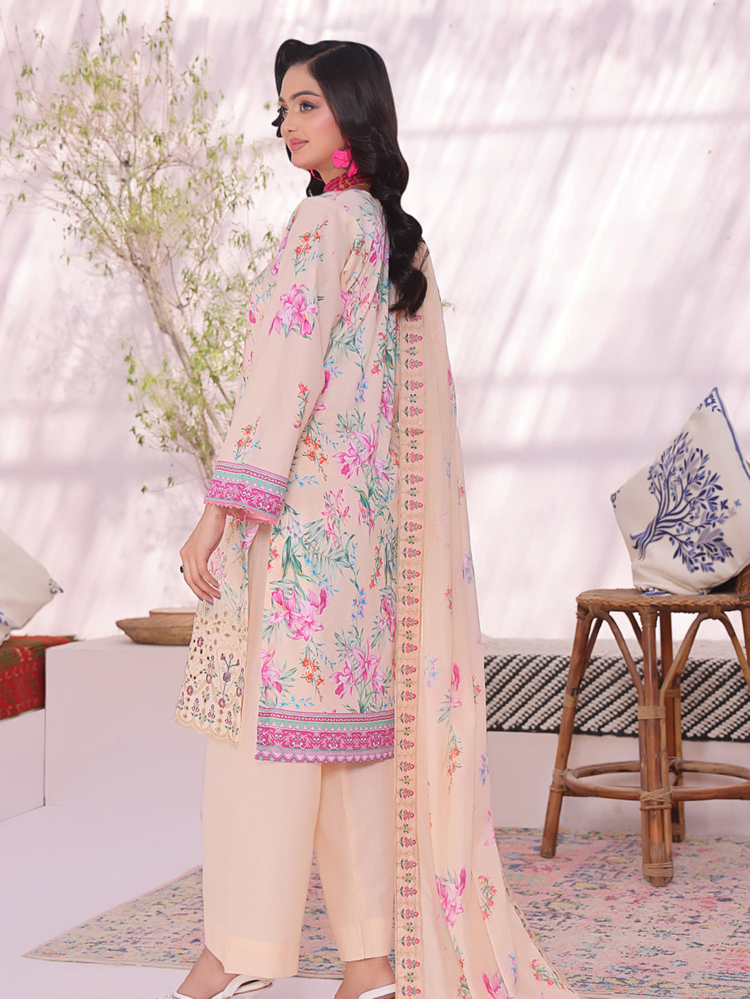 Digital Printed Applique Embroidered Lawn Dupatta.
