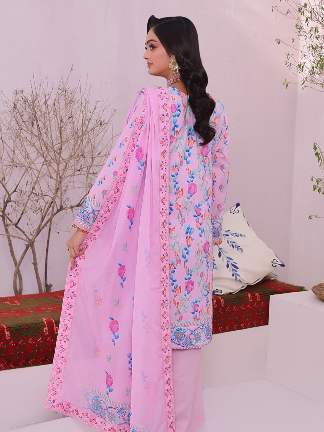 Digital Printed Applique Embroidered Lawn Dupatta.