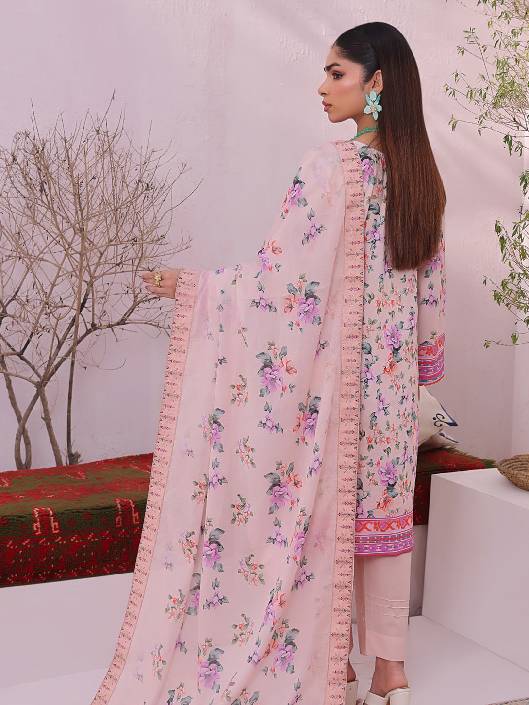 Digital Printed Applique Embroidered Lawn Dupatta.