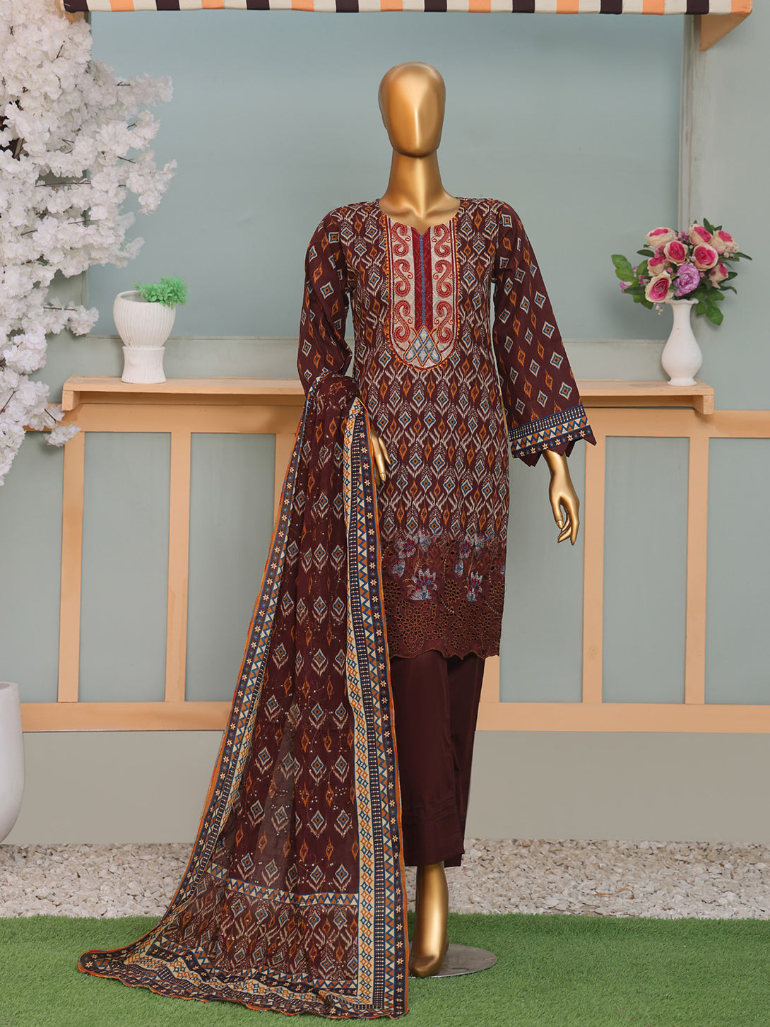Digital Printed Jhaal Embroidered Lawn Dupatta.