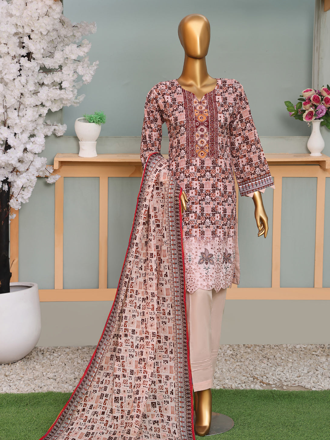 Digital Printed Jhaal Embroidered Lawn Dupatta.