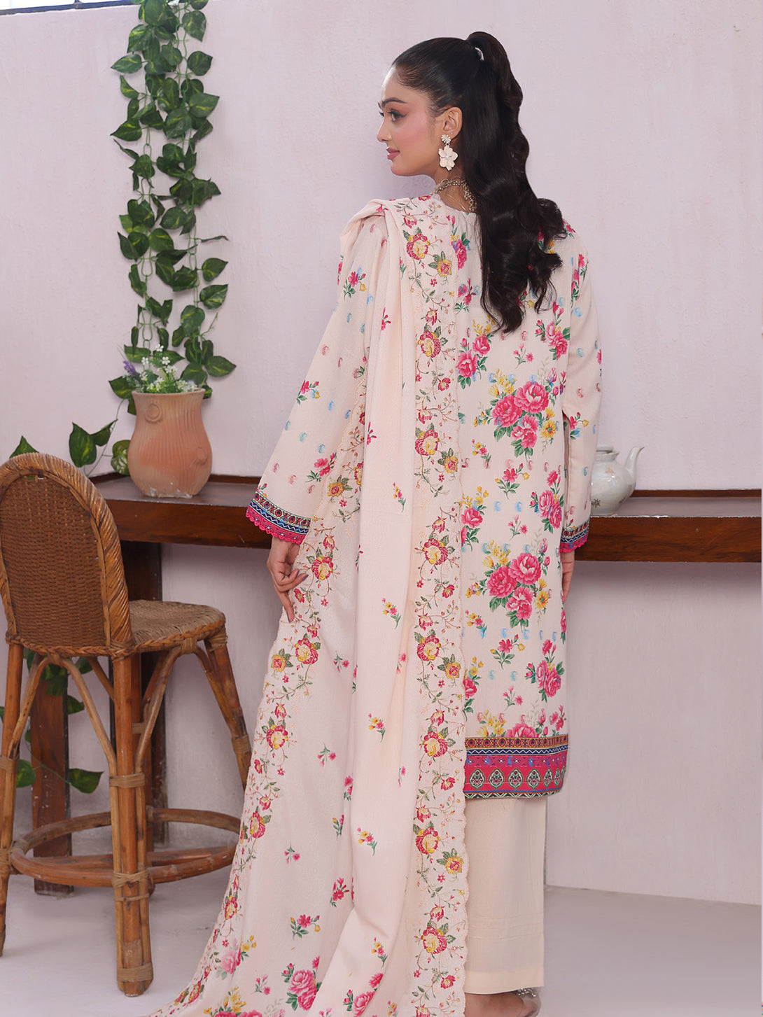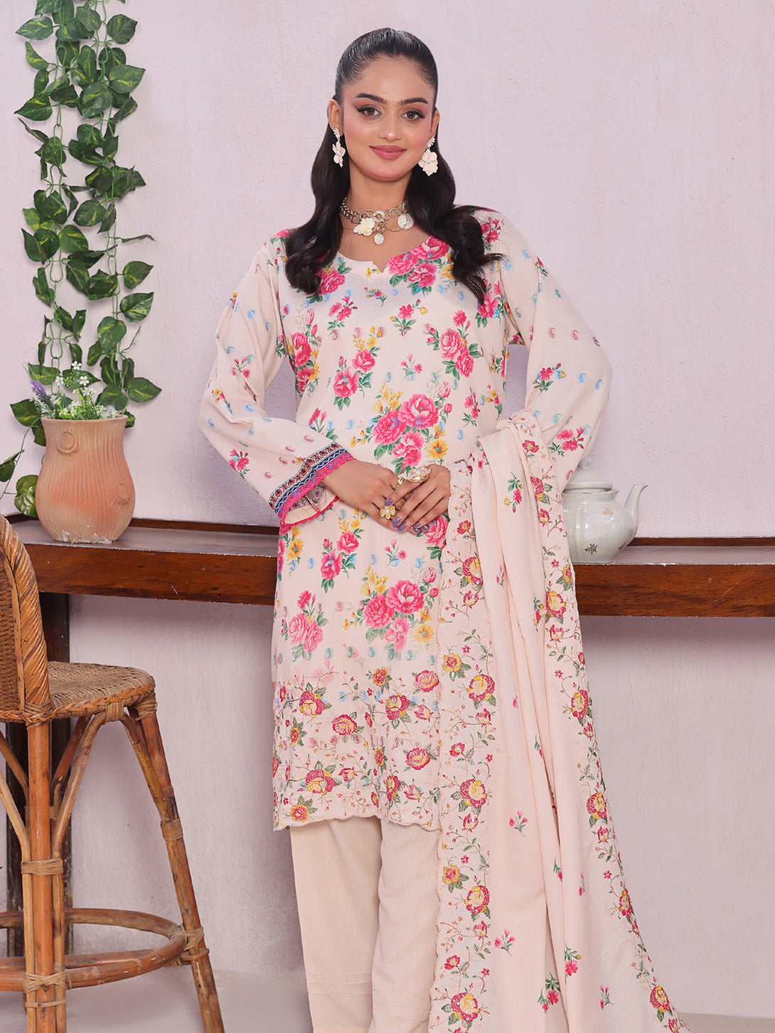 Digital Printed Embroidered Cutwork Karandi Dupatta.