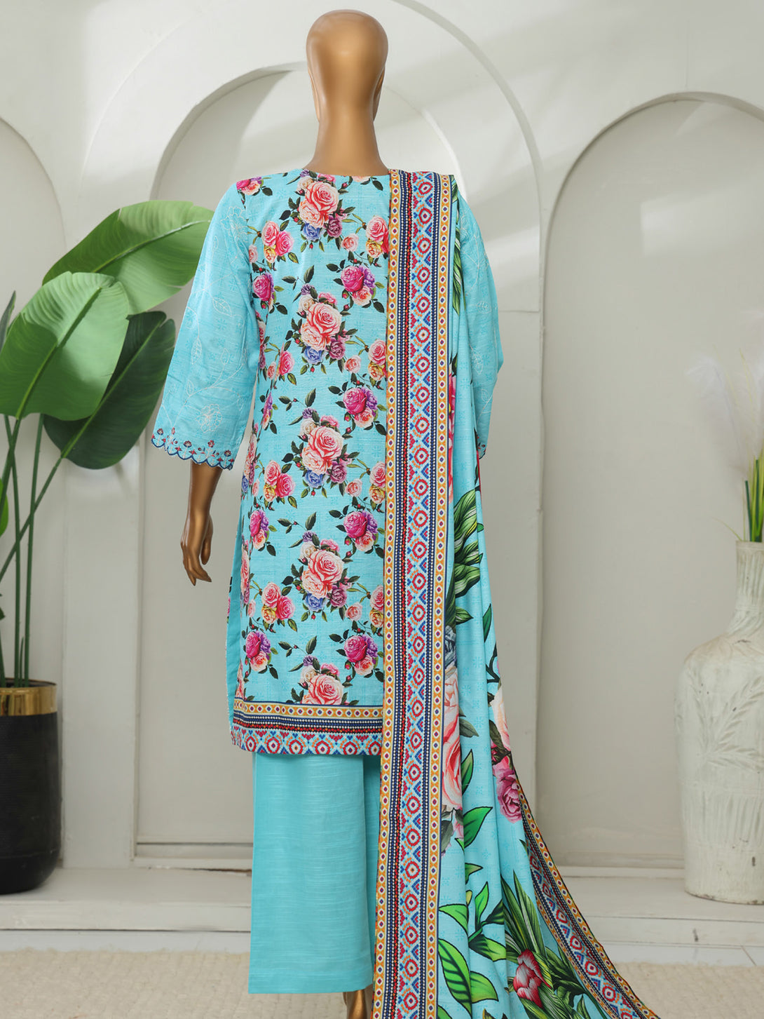 Details: Digital Printed Embroidered Slub Khaddar Shirt with Embroidered Sleeves.